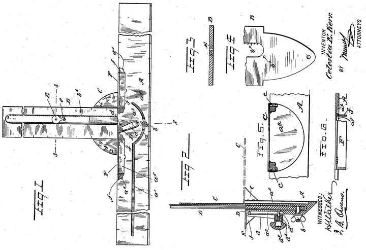 On January 1, 1901, Celestia E. Kerr of Decatur, Georgia, obtained a patent for a novel drawing and measuring instrument combining multiple tools into a single device. The invention integrated a ruler, T-square, protractor, compass, and adjustable arms with folding and locking features to enable accurate measuring and angle setting.