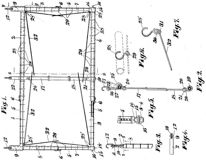 On December 1, 1908, Celestia L. Stolp of Los Angeles, California, obtained a patent for an improved curtain stretcher designed to dry curtains without tearing or distorting them. The invention featured an adjustable, foldable rectangular frame with telescoping members, hooked rings, and removable needles that securely held curtain edges while maintaining proper shape.