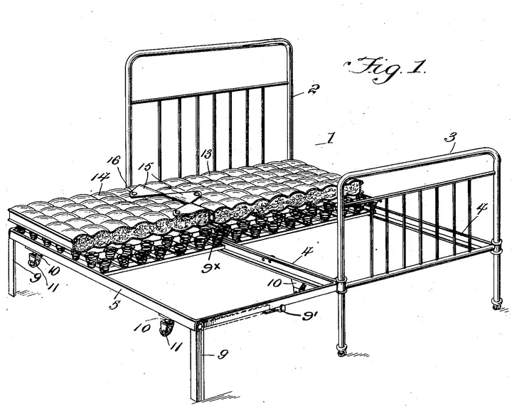 On May 4, 1920, Celestia M. Winn of Watonga, Oklahoma, was awarded a patent for an improved bed featuring a removable extension frame to accommodate additional sleepers. The extension could be securely attached to the bed for use, then folded with pivoted legs and rolled underneath on casters when not needed.