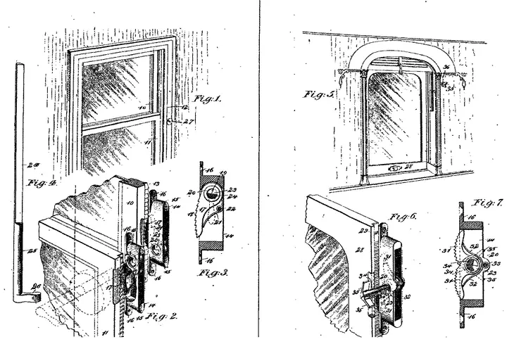 On July 27, 1895, Eliza Alice Abrams of Los Angeles - a dealer in patents - patented a novel sash lock for windows. Her design used opposing pawls and ratchet bars built into the window frame, allowing each sash to lock securely in place and be released with a single concealed key. Her system made windows safer, prevented forced entry, and could also be adapted for car windows and screens.