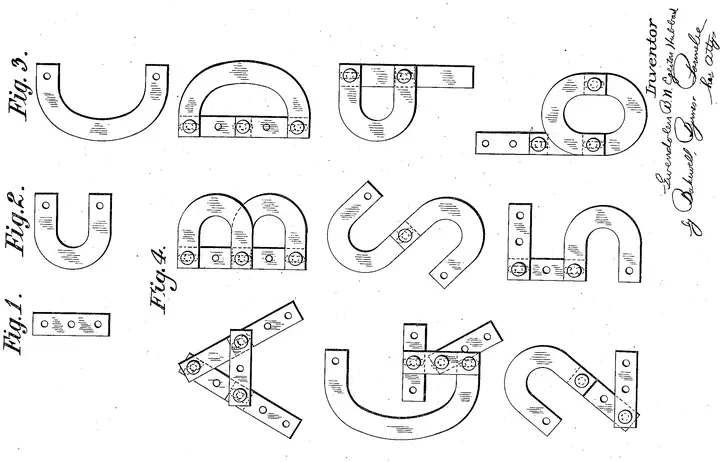 On April 17, 1923, English inventor Gwendolen Beatrice Nora Egerton Hubbard, then residing in Hollywood, California, obtained a patent for an educational toy made from just three simple shapes that could be combined to form any letter or numeral. By fastening these perforated pieces together, children could easily learn how characters were constructed without being overwhelmed by too many varied parts.