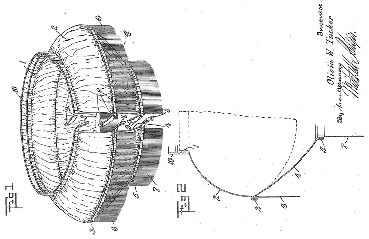 On February 6, 1917, Olivia W. Tucker of Brooklyn, New York, patented an adjustable ornamental fabric lamp shade. Designed with elastic and stay-filled bands, her shade could be fitted to fixtures of various sizes while maintaining a continuous, decorative appearance.