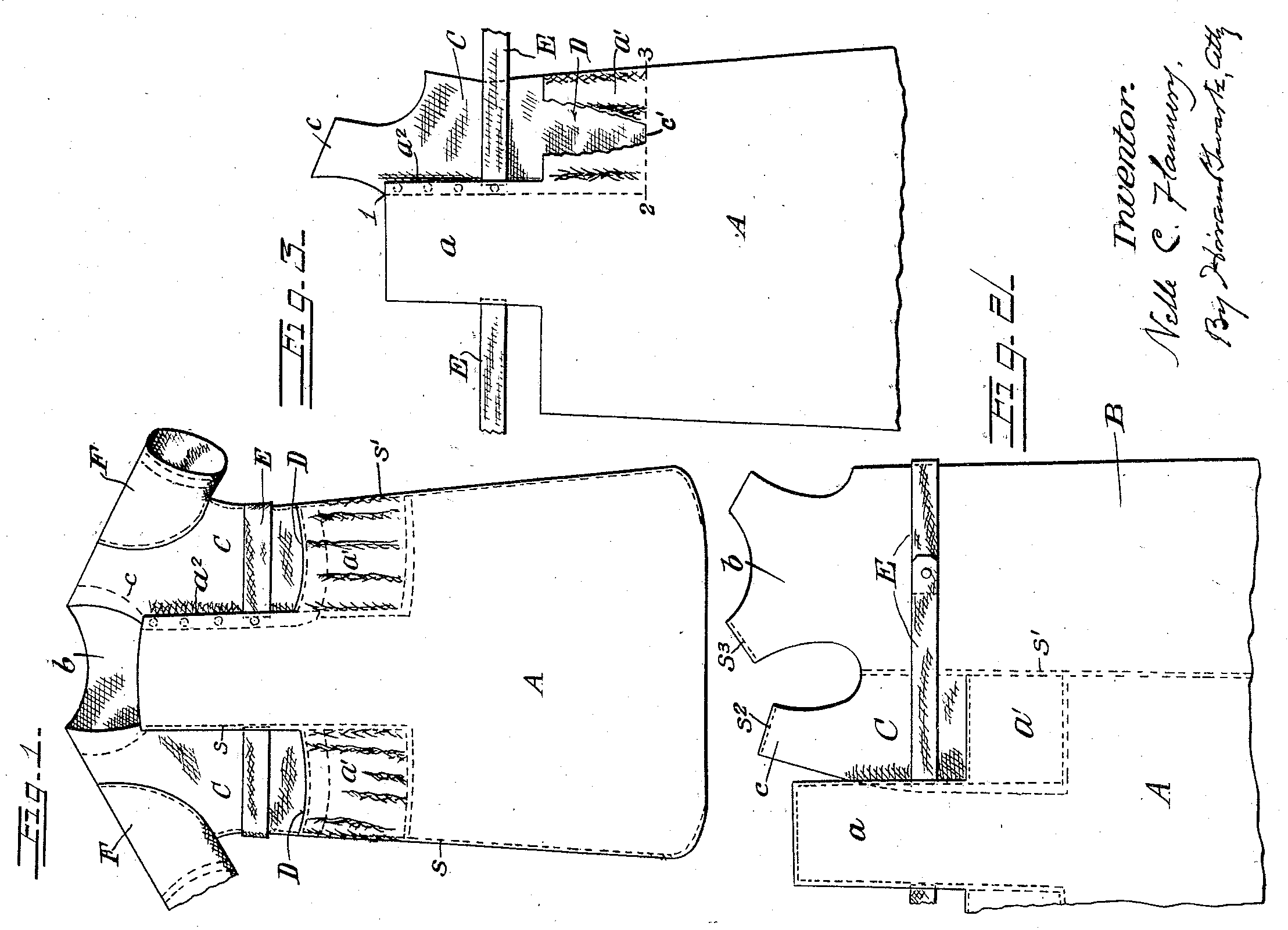 On July 21, 1914, Nelle M. Peters of Chicago, Illinois, patented a one-piece, sleeveless garment designed to drape gracefully over the shoulders, giving the illusion of sleeves. Made from a single piece of fabric, it featured cleverly placed hooks and eyes to fasten the front and back, combining elegance with practical simplicity.